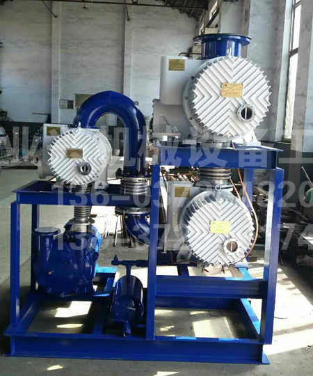 真空机组是以罗茨泵为主泵,以水环泵为前级泵串联而成的。罗茨水环真空机组选用水环泵作为前级泵比其它真空泵更为有利,它克服了单台水环泵使用时极限压力差(机组的极限压力比水环泵有很大的提高),在一定压力下抽气速率低的缺点,同时保留了罗茨泵能迅速工作,有较大抽气速率的优点。尤其能够适应抽除大量的可凝性蒸汽,特别是当气镇油封机械真空泵排除可凝性蒸汽能力不够,或使用的溶剂能使泵油恶化而影响性能,或者是真空系统不允许油污染的时候更为明显。当配有防爆电机及电器时并遵守相应的安全规则下,还可抽除易燃易爆的气体。因此罗茨泵-水环泵机组广泛地用于化工行业中的真空蒸馏、真空蒸发、脱水结晶;食品行业中的冷冻干燥;医药工业的真空干燥;轻纺工业的涤纶切片;高空模拟试验等的抽真空系统中。